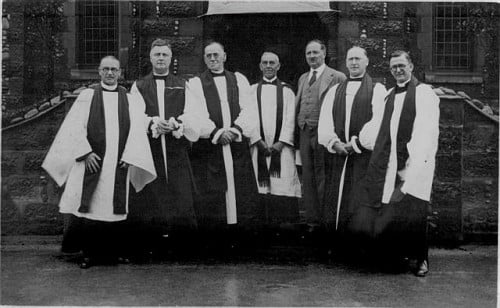 You’ll notice that the pictures used to illustrate this entry have come from what is now seen as the “evangelical” tradition of the Anglican spectrum (what was, for several hundred years, the basic vesture of Anglican priests)–the classic cassock, surplice, and tippet still worn as the standard by clergy of the Free Church of England. In parishes and cathedrals in the United States and the United Kingdom that follow Percy Dearmer’s scholarly admonitions, the surplice and tippet are worn for Morning and Evening Prayer, while an alb, stole, and chasuble are worn for the Holy Communion; in some parishes, the surplice and tippet are still retained for Communion, whereas in others a stole is worn over the surplice–in still other places the cope may be worn over the surplice and stole or tippet.