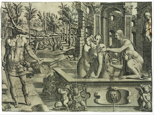 Metamorphosis of Actaeon depicts an abuse of power, and, in turn, the horned face in Flicke’s portrait may communicate “the proper extent of royal power.”[25] The legend of this print translates to “Know your lord.” Null proposes, “This precept was at the very heart of Cranmer’s Protestant doctrine of the Godly Prince and the reason for his secret repudiation of papal authority prior to his consecration as archbishop. Consequently, the mask would seem a subtle allusion to the importance Cranmer’s Erastian views on church government had for his Protestant convictions.”[26]